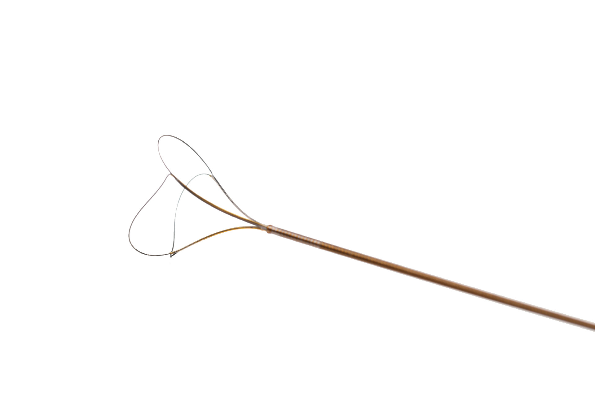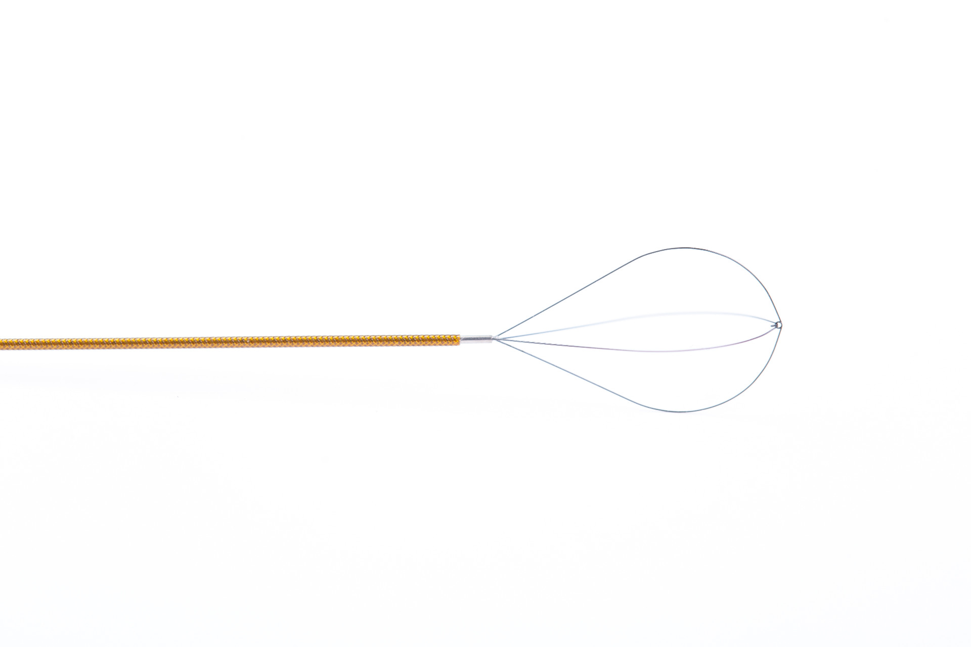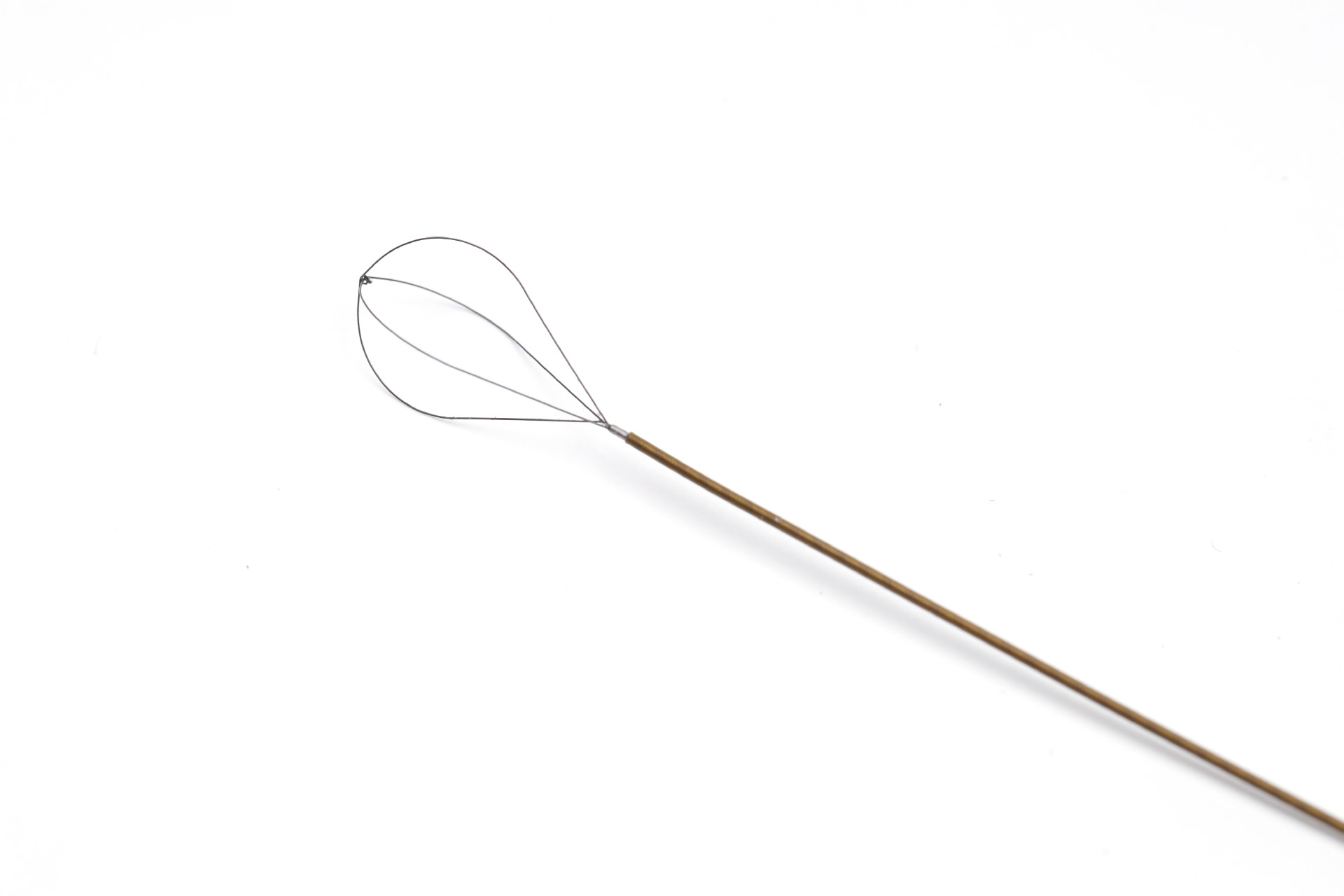 取石网篮由网篮(镍钛合金丝)、销管、网篮连接杆和手柄等组成,网篮由3条或4条镍钛丝编织而成,产品呈线性管状。