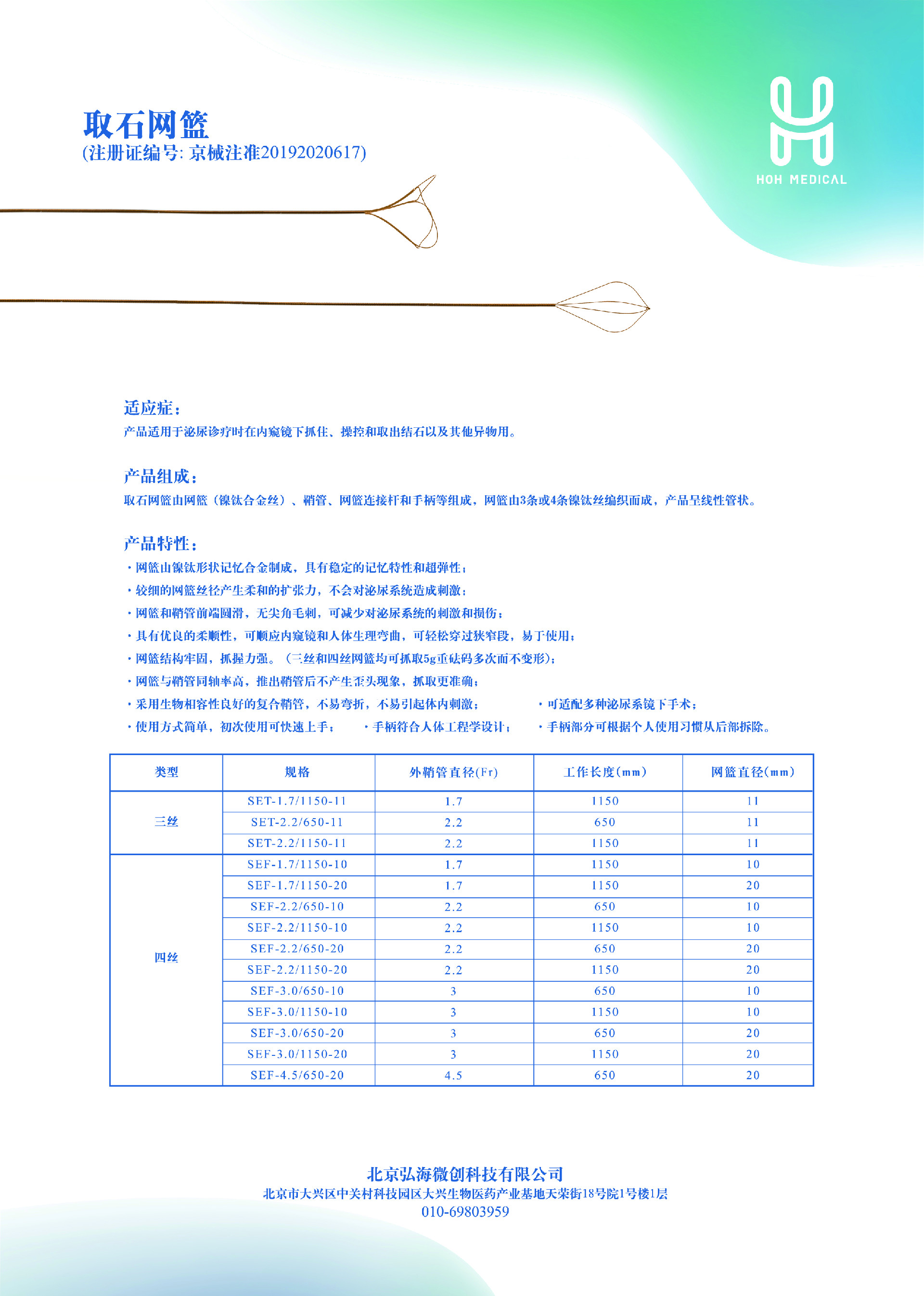 ·网篮与鞘管同轴率高,推出管后不产生歪头现象,抓取更准确:可适配多种泌尿系镜下手术;